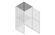 Cogan double tier tenant storage lockers feature 7'0", 7'6" or 8'0" freestanding posts. All panels, dividing shelves and swing doors are made of heavy-duty 2"x2"x10GA welded wire mesh framed in 1 ¼"x1 ¼"x12GA structural angle and sealed with a powder-coated grey paint finish. Transom angle is attached to the front and runs along the top of each unit, creating a superior reinforced frame. Roof panels are made of 2"x2"x6&8GA or 2"x4"x10GA galvanized welded wire mesh. Back panels are made of 2"x2"x6&8GA galvanized welded wire mesh. The open wire mesh construction is maintenance-free and allows for proper ventilation and full light penetration. Your property remains in top condition and in constant view.