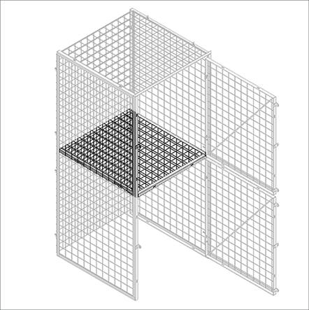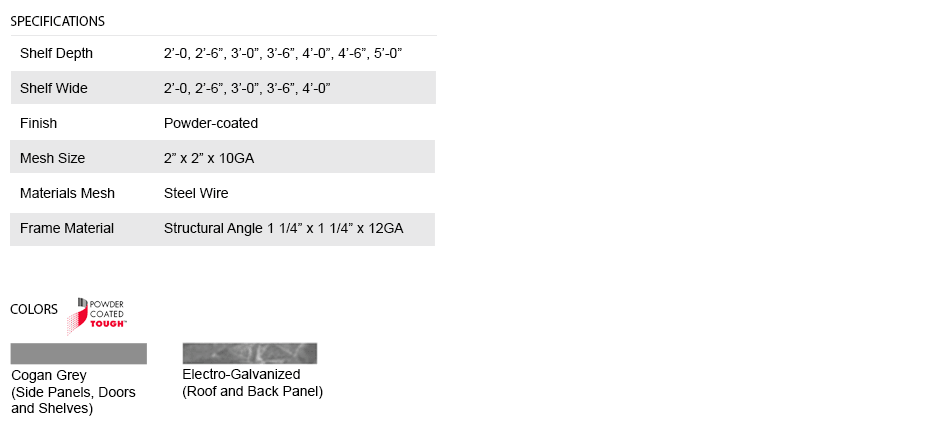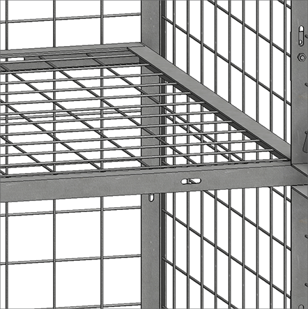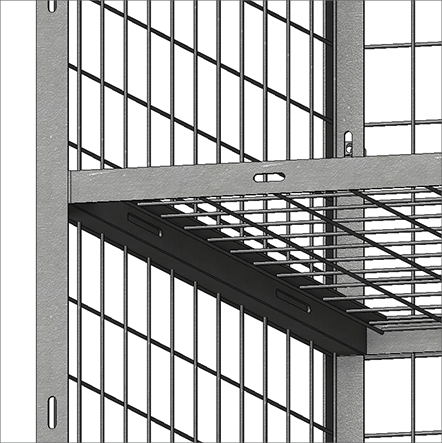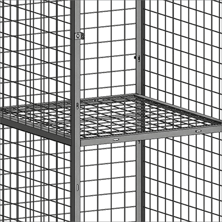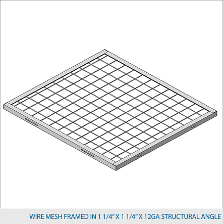 Dividing shelves are made of 2" x 2" x 10 GA welded wire mesh framed in 1 ¼" x 1 ¼" x12GA structural angle.