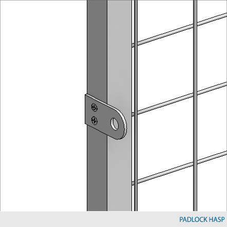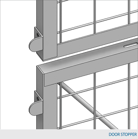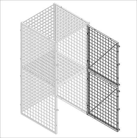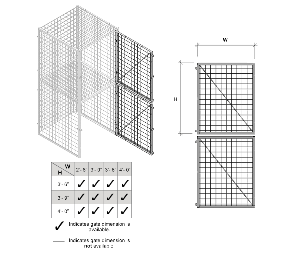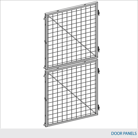 All double-tier swing doors are equipped with a padlock hasp, hinges and door stoppers. Doors are made of 2" x 2" x 10 GA welded wire mesh with one welded 1/2" ø reinforcement rod from corner to the corner.