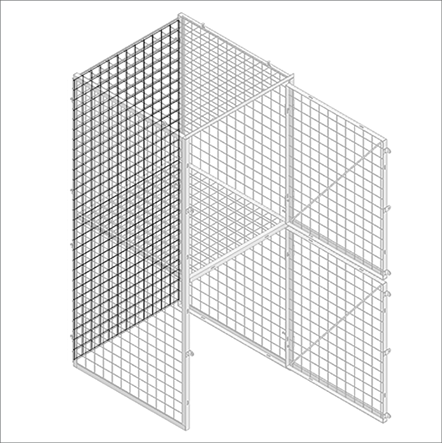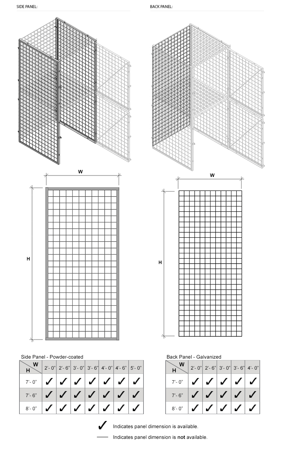 Side panels are made of framed 2" x 2" x 10 GA welded wire mesh with 1 ¼" x 1 ¼" x12GA structural angle. The back panel are made of unframed 2" x 2" x 6&8GA welded wire mesh.