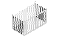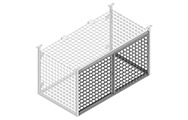 Fully suspended hanging tenant storage lockers feature a spacious interior ranging from 6'0"W x 3'0"H x 2'0"D to 8'0"W x 4'0"H x 3'0"D. All side, floor and transom panels are made of unframed 2" x 2" x 6&8GA galvanized welded wire mesh. This innovative design allows for any necessary trimming around water pipes, wall irregularities and obstructions to be done right on-site, eliminating costly installation charges. Side frames are made of 1 1/2" x 1 1/2" x 16GA square tubing and come pre-welded with adjustable ceiling plates for easy adaptability on uneven surfaces. All upper and lower tracks, as well as doors are sealed with a silver powder-coated paint finish. All hanging tenant storage lockers are equipped with 2 sliding doors. Optional roof panels are also available.