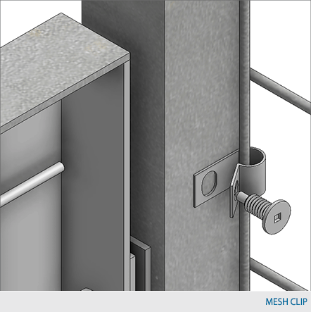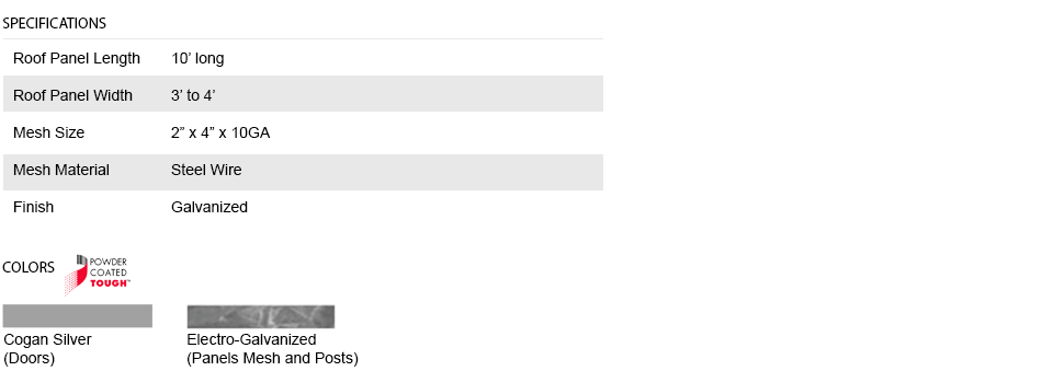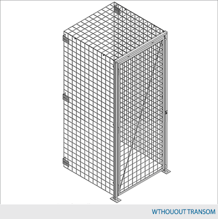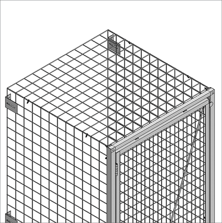 This freestanding tenant storage locker features 7'-8'high posts and a security roof. All side panels are made of 2"x2"x6&8GA galvanized welded wire mesh and do not require angle frame. This innovative unframed design allows for any necessary trimming around water pipes, wall irregularities and obstructions to be done right on-site, eliminating costly installation charges. Swing doors are made of framed 2"x2"x10GA welded wire mesh with a powder coated tough paint finish. Heavy-duty 1 1/8"x1 1/8"x12GA structural steel transom angle runs across the top of each unit, creating a superior reinforced frame. Posts are equipped with adjustable foot plates for added stability on uneven surfaces. Roof panels are made of 2"x4"x10GA galvanized welded wire mesh.