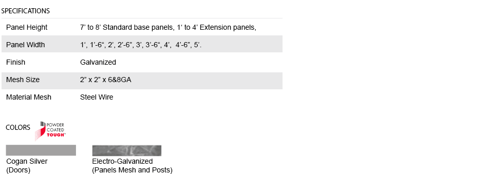 Panels are made of unframed 2" x 2" x 6&8GA welded wire mesh.