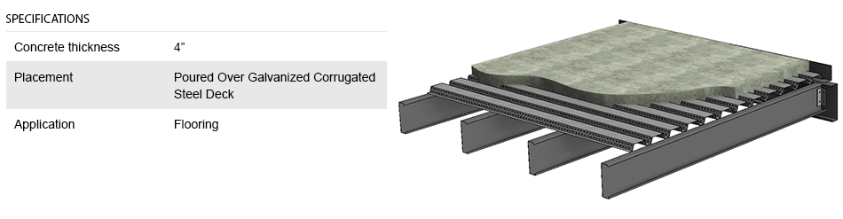 Cogan also offers concrete flooring over a galvanized corrugated steel deck.