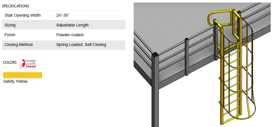 Cogan's self-closing safety gate serves as an additional security option to guard the opening on a mezzanine ladder entryway.