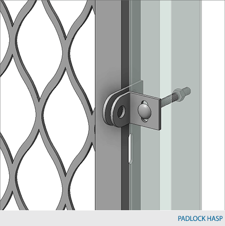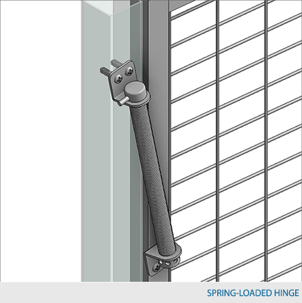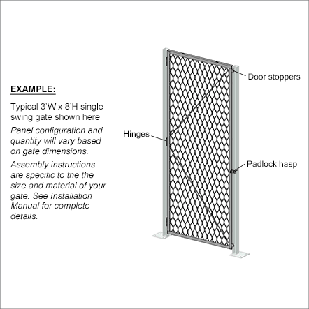 All single swing gates are equipped with a padlock hasp, hinges and door stoppers. Gates can be installed in four different orientations (open inwards or outwards / swing left or right). Additional lock options are also available.
