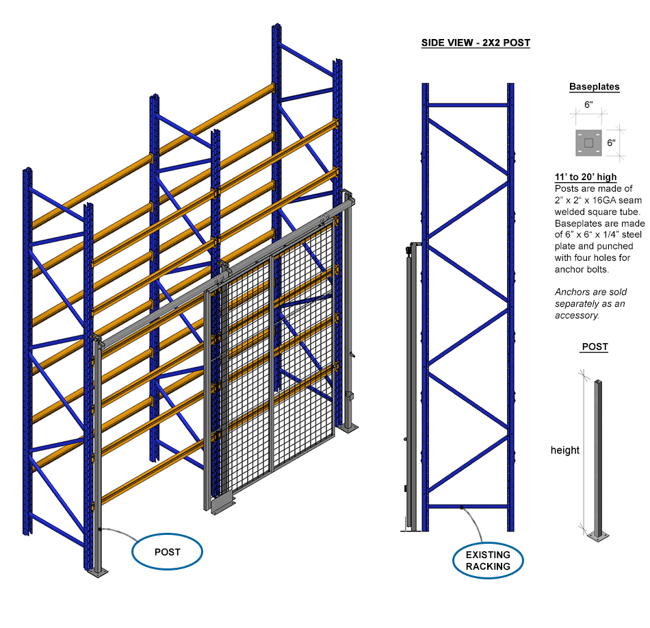DETAILS – POST 2" x 2" BRACED TO RACKING