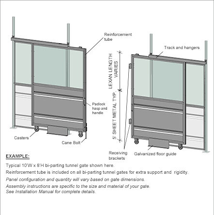Sheet Metal / Lexan Partitions - Bi-Parting Tunnel Gates