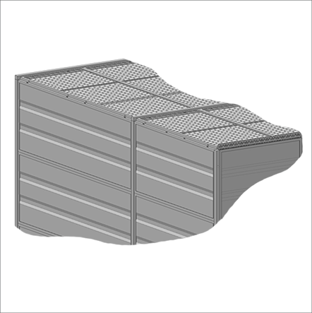 Roof panels are made of 2" x 2" x 10 GA welded wire mesh framed in 1 1/4" x 1 1/4" x 12GA structural angle with one or two welded 1/2" ø reinforcement rods.