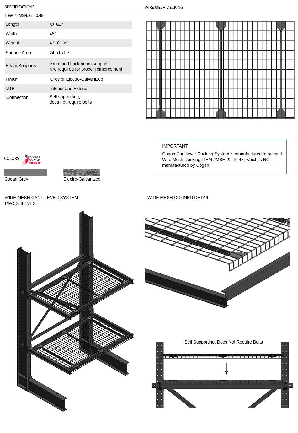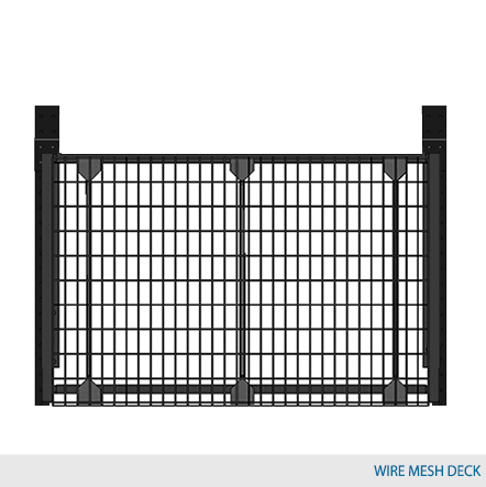 The wire mesh overlay provides sturdy support for materials. It is placed between the rack arms and secured using front and back beam supports. Ideal for indoor and outdoor applications.